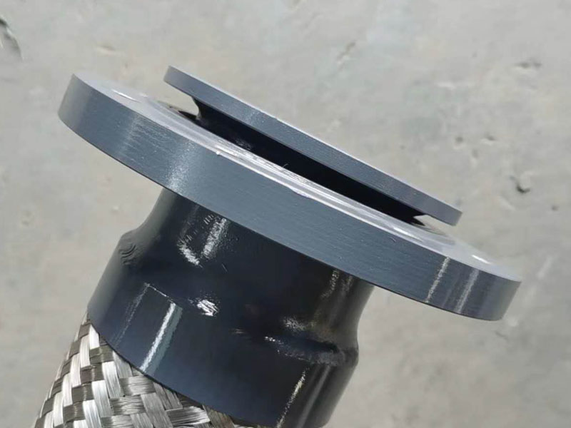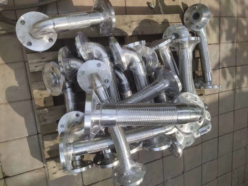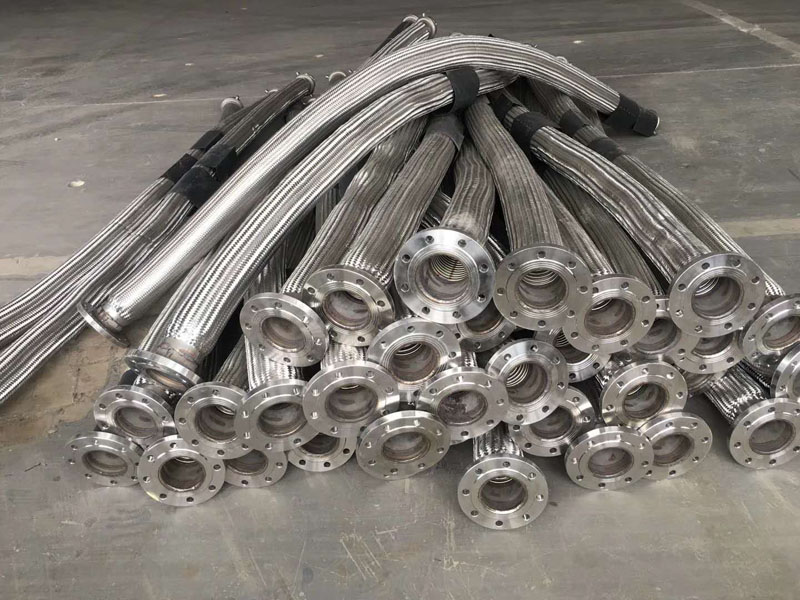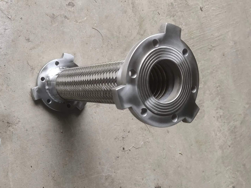 法蘭連接金屬軟管是由法蘭、不銹鋼波紋管、不銹鋼編織網(wǎng)、接管、護(hù)套等結(jié)構(gòu)件組合而成。在管系中作柔性配件使用,可以減少管道的振動,矯正安裝偏差等功能。